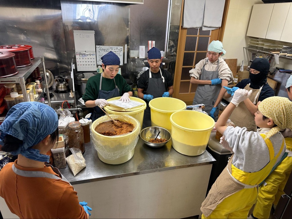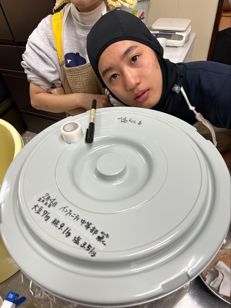 スノーシューで歩いた日の午後には味噌作りもしました。