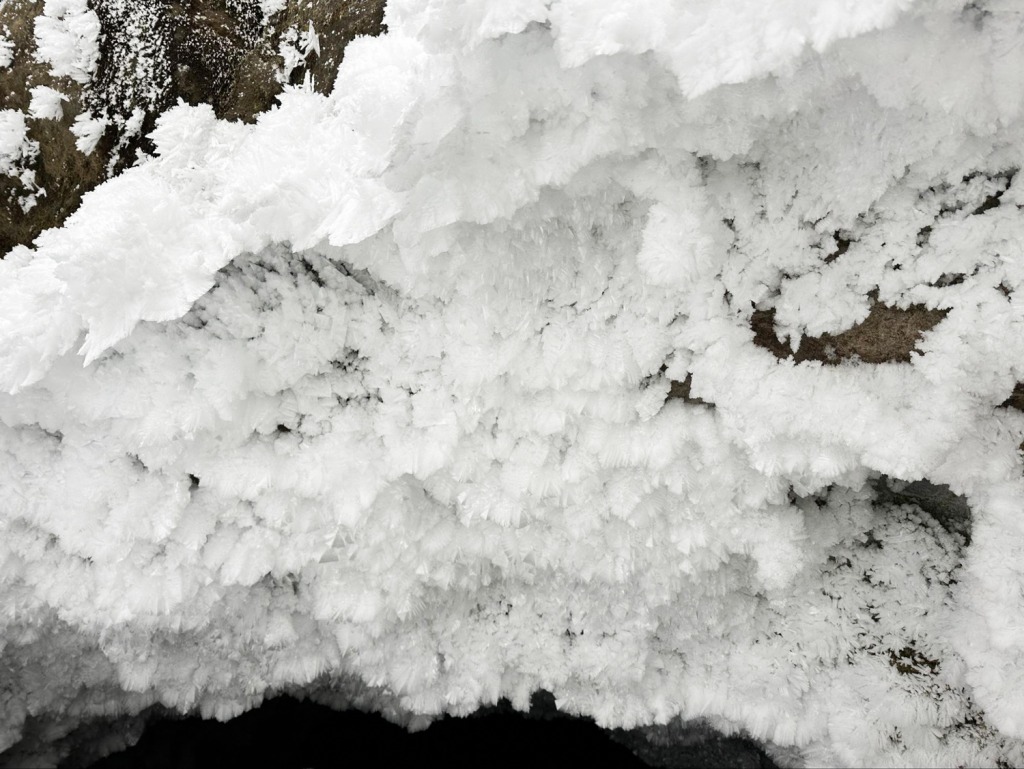流れの弱い滝が少しずつ凍って、大きくなっていくんだそうです。