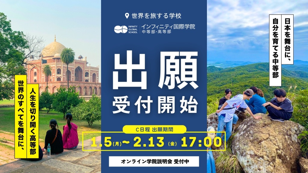 世界を舞台にしたフィールドワークと探究(PBL)で学ぶオルタナティブスクール「インフィニティ国際学院 中等部・高等部」では、2026年度(4月入学)C日程の出願受付を開始しました。
